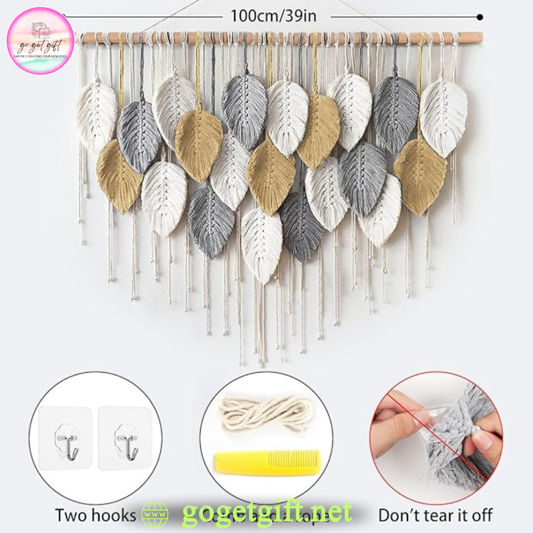 🌿 **High-quality macramé**: This piece is expertly crafted using natural rope with beautiful woven leaves. It’s crafted from expertly knotted threads on a wooden dowel and features elegant fringe detailing that adds a charming touch to any room.